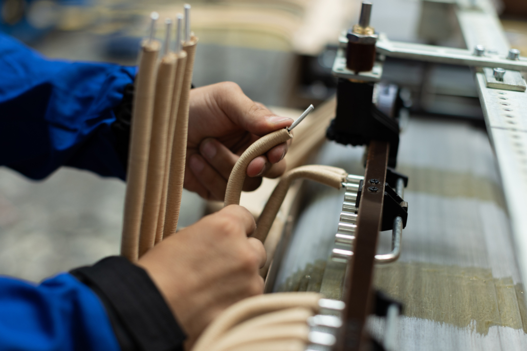 Low losses are not just a matter of materials, but also require precise design and manufacturing technologies to ensure optimum use of these superior raw materials. We use advanced shearing lines with Step-Lap technology to produce magnetic cores. This method ensures extremely precise lamella joints at the corners of the core, minimizing air gaps and reducing local eddy current and hysteresis losses at magnetic flux bending points.
